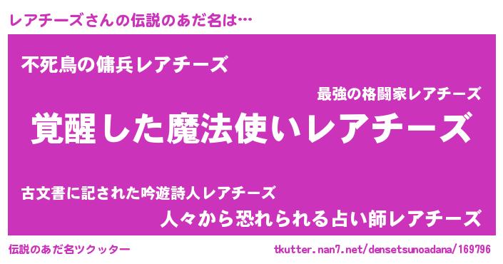 | ヒーロー風カッコイイあだ名 | 『天弓騎士レア』『スーパーレアチーズ』 |