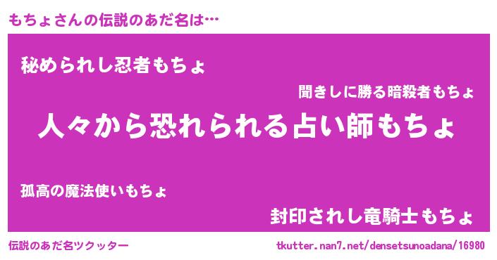| ヒーロー風カッコイイあだ名 | 『友情の使者もちょ』『仮面モチダー』 |