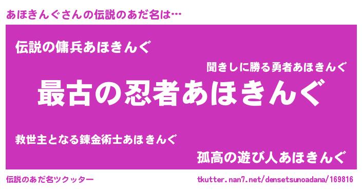 | 意味不明あだ名 | 『あほきんぐフォーエバー』 |