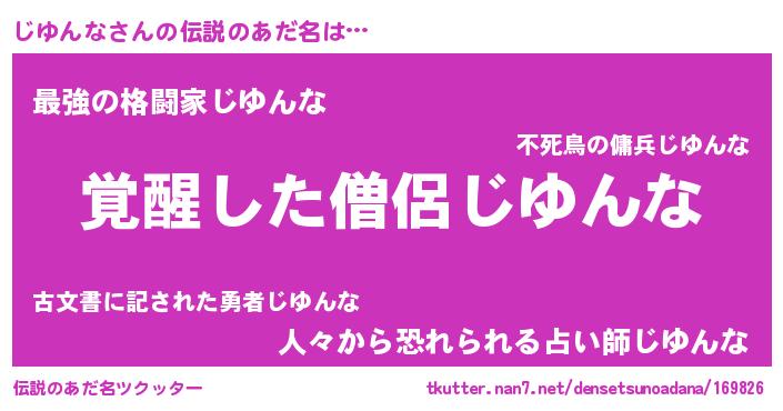 | 男性向けラノベタイトル風あだ名 | 『じゆんなに滅ぼされるだけの簡単なお仕事です』 |