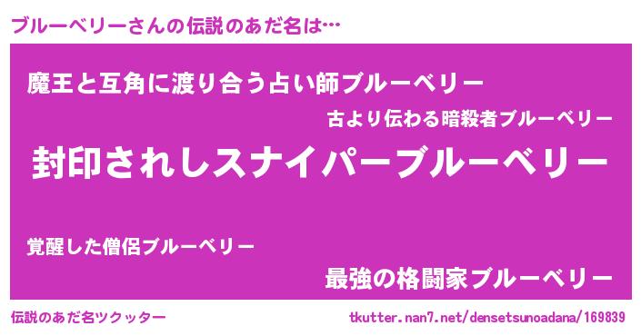 | ヒーロー風カッコイイあだ名 | 『スーパーブルーベリー』『仮面ブルダー』 |