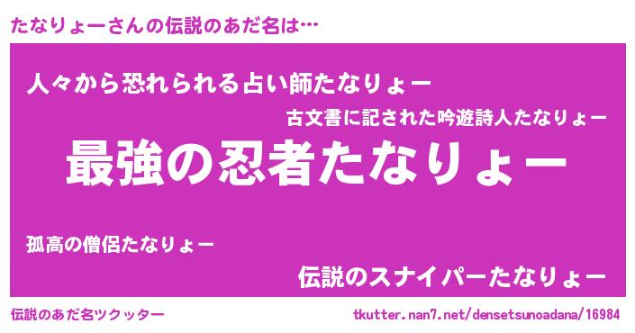 | 意味不明あだ名 | 『たなりょーフォーエバー』 |