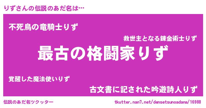 | ファンタジー風あだ名 | 『エターナルリズー』『ゼリズトゥ』 |
