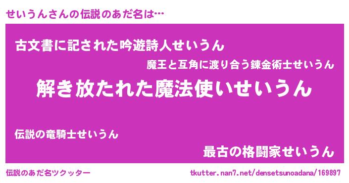 | ヒーロー風カッコイイあだ名 | 『幻影騎士セイ』『ネオセイウン』 |
