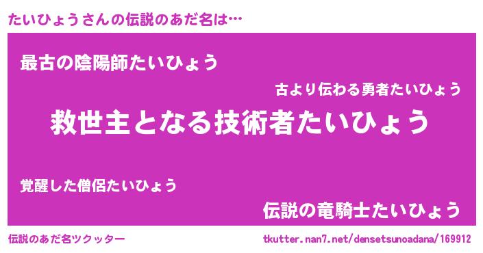 | ヒーロー風カッコイイあだ名 | 『天空の使者たいひょう』『仮面タイダー』 |