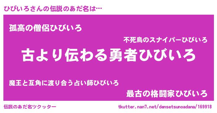 | ポケモン風あだ名 | 『ヒビゴンZ』『ゼニヒビ』『ヒービイ』 |
