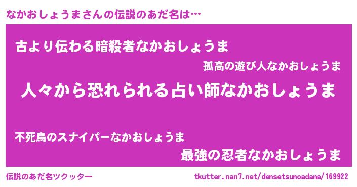 | 男性向けラノベタイトル風あだ名 | 『緋弾のナカオショウマ』 |