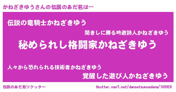 | ファンタジー風あだ名 | 『エターナルカネザキユウー』 |