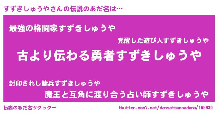 | ヒーロー風カッコイイあだ名 | 『サイバー戦士スズキシュウヤ』 |
