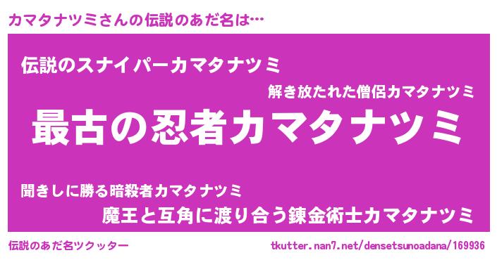 | 欧米人風あだ名 | 『カマタナツミ・ステッグマイヤー』 |