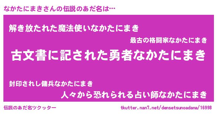 | 意味不明あだ名 | 『永久保存なかたにまき』 |