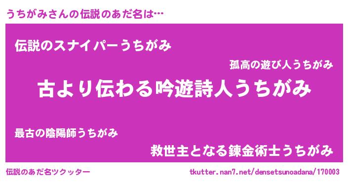 | ヘコむあだ名 | 『うちがみ(小並感)』『うちにー』 |