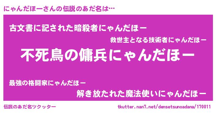 | 男性向けラノベタイトル風あだ名 | 『にゃんだほーの憂鬱』 |
