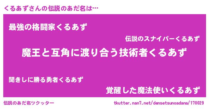 | 意味不明あだ名 | 『住所不定無職くるあず(13歳)』 |