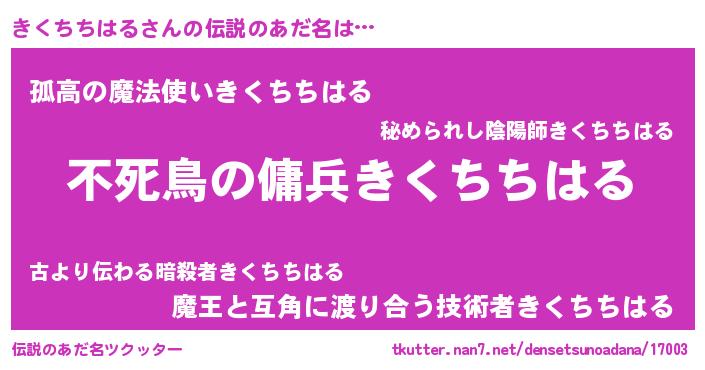 | ヒーロー風カッコイイあだ名 | 『スーパーキクチチハル』『暗黒騎士キク』 |