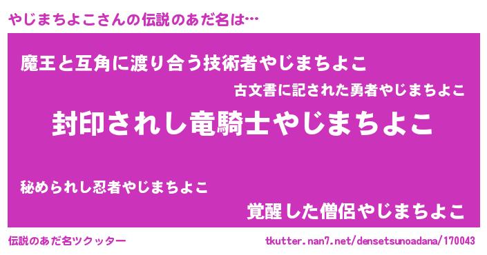 | 男性向けラノベタイトル風あだ名 | 『ヤジマチヨコアートオンライン』 |