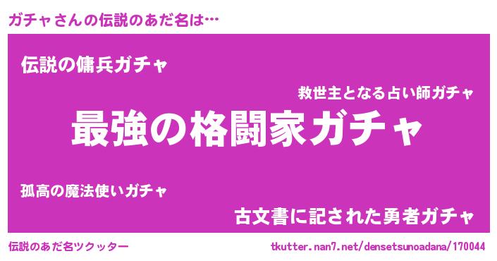 | ヒーロー風カッコイイあだ名 | 『ウルトラガチャマン』『スーパーガチャ』 |