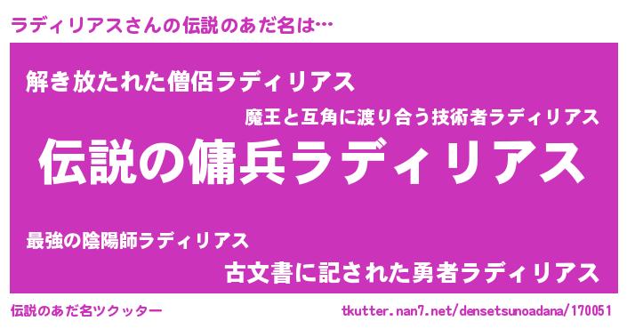 | 胡散臭い通販商品みたいなあだ名 | 『必ず成功する水晶球…その名も「ラディリアス」』 |