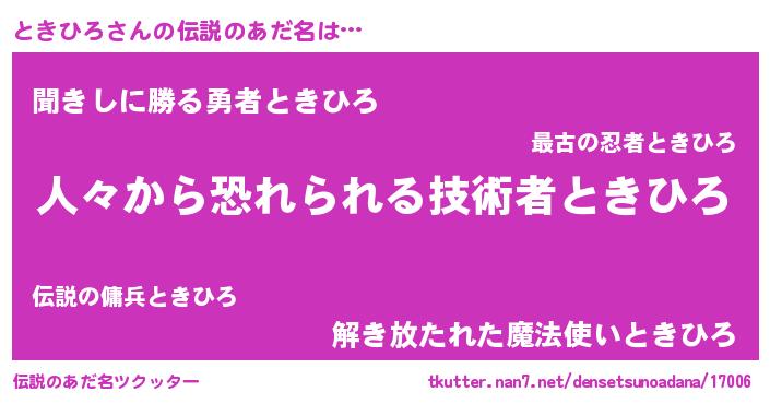 | ヒーロー風カッコイイあだ名 | 『正義の使者ときひろ』『ネオトキヒロ』 |