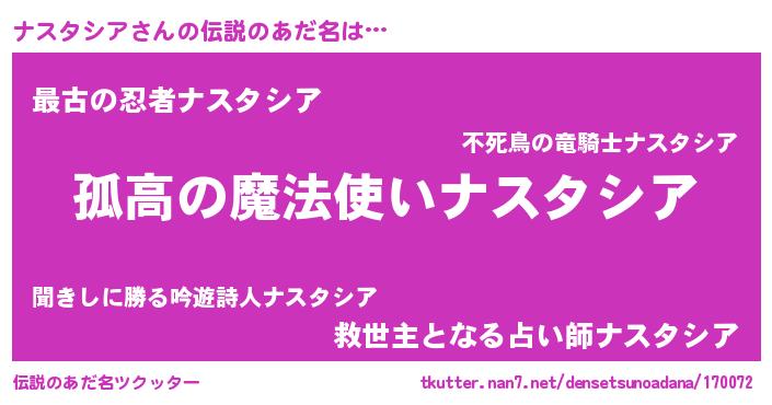 | 胡散臭い通販商品みたいなあだ名 | 『信頼と実績のサプリメント…その名も「ナスタシア」』 |