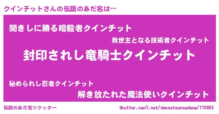 | 意味不明あだ名 | 『住所不定無職クインチット(6歳)』 |