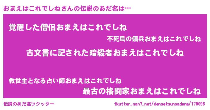 | ヒーロー風カッコイイあだ名 | 『ネオオマエハコレデシネ』 |