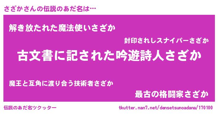 | 欧米人風あだ名 | 『ダルビッシュさざか』『ウサインさざか』 |