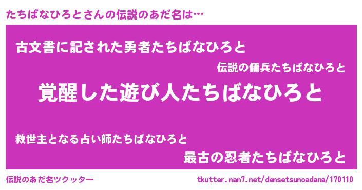 | ポケモン風あだ名 | 『タチゴンZ』『ヒタチバナヒロト』 |
