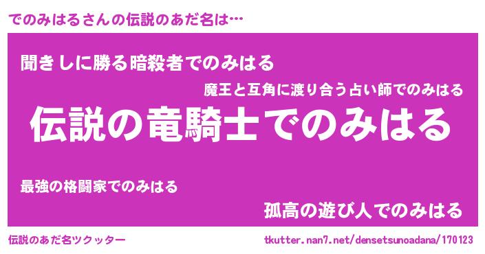 | 胡散臭い通販商品みたいなあだ名 | 『必ず成功するブレスレット…その名も「でのみはる」』 |