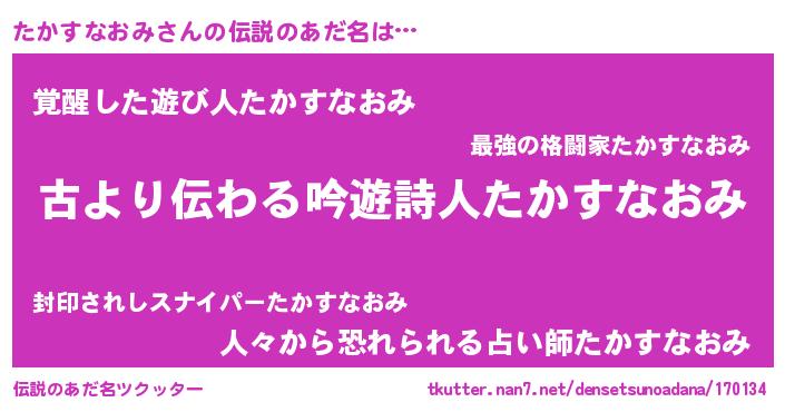 | 意味不明あだ名 | 『永久保存たかすなおみ』 |