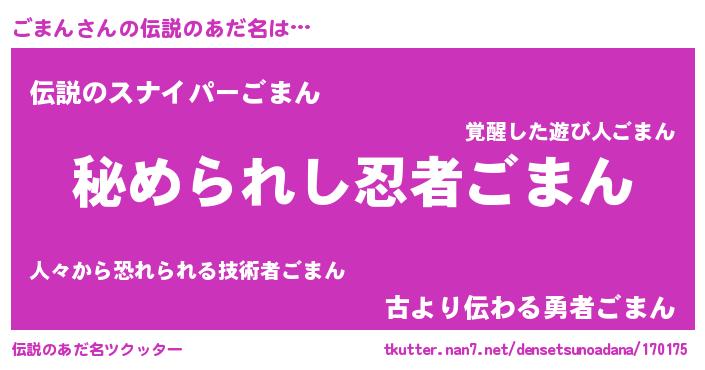 | ヒーロー風カッコイイあだ名 | 『ウルトラごまんマン』『スーパーゴマン』 |