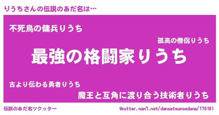 | ヒーロー風カッコイイあだ名 | 『究極戦士リウチ』『ウルトラりうちマン』 |