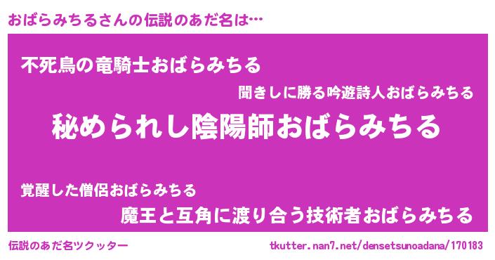 | ファンタジー風あだ名 | 『エターナルオバラミチルー』 |