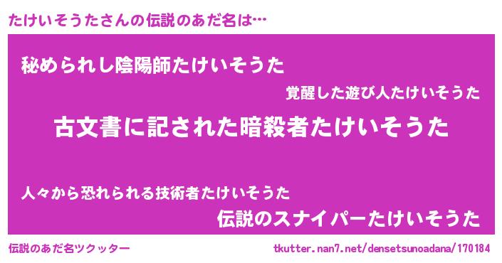 | 意味不明あだ名 | 『永久保存たけいそうた』 |