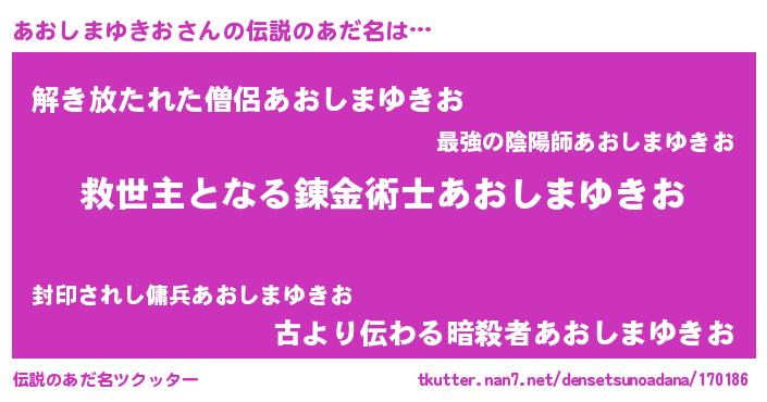 | ヒーロー風カッコイイあだ名 | 『慈愛の使者あおしまゆきお』 |