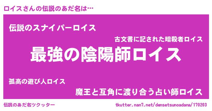| ファンタジー風あだ名 | 『エターナルロイスー』『ロイフェル』 |