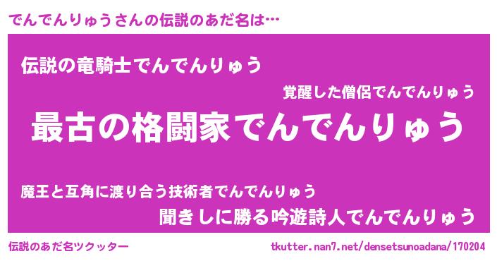 | 意味不明あだ名 | 『住所不定無職でんでんりゅう(5歳)』 |