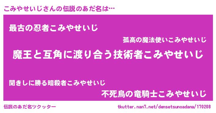 | 意味不明あだ名 | 『眠気覚ましガムこみやせいじ味』 |