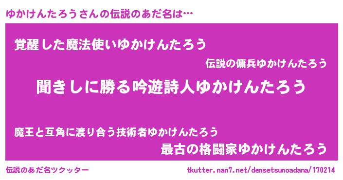| 男性向けラノベタイトル風あだ名 | 『ゆかけんたろうという概念が存在しない退屈な世界 』 |