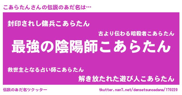 | 意味不明あだ名 | 『住所不定無職こあらたん(77歳)』 |