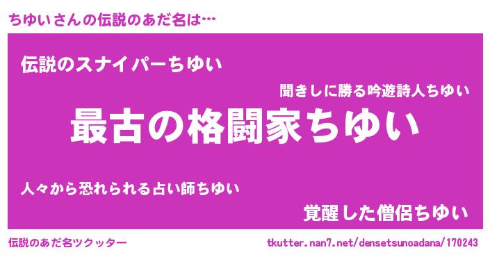 | ファンタジー風あだ名 | 『エターナルチユイー』『チユフェル』 |
