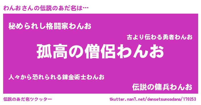 | ヒーロー風カッコイイあだ名 | 『ウルトラ戦士ワンオ』『暗黒騎士ワン』 |