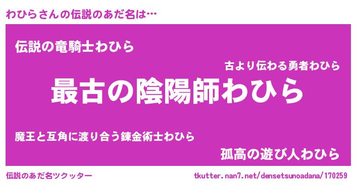 | 意味不明あだ名 | 『わひらフォーエバー』『ペロリンわひら』 |