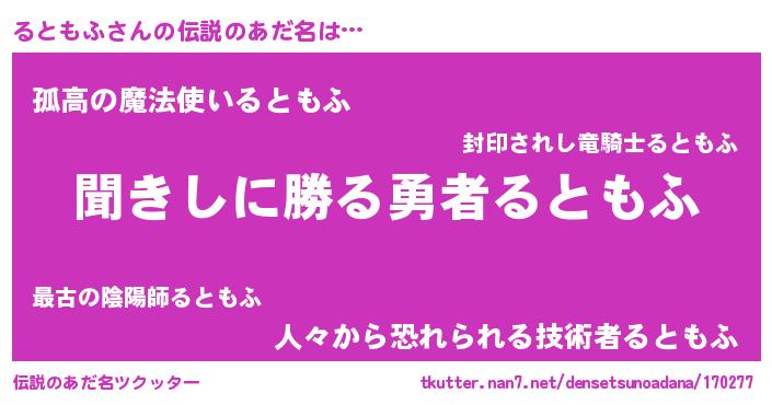 | ヘコむあだ名 | 『るともふ(震え声)』『るとお』 |