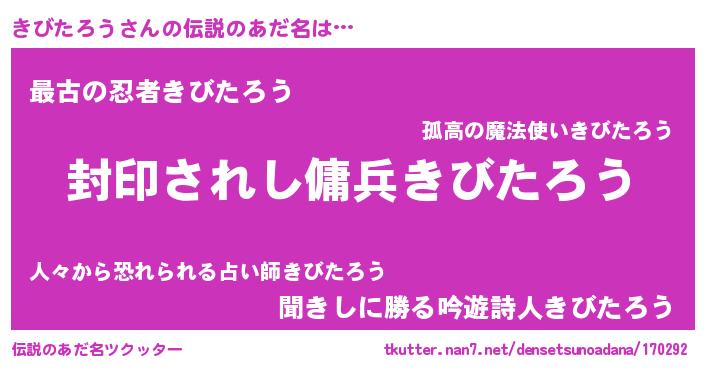 | ファンタジー風あだ名 | 『キビフェル』『エターナルキビタロウー』 |