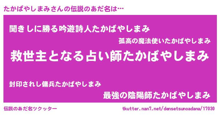 | ヒーロー風カッコイイあだ名 | 『慈愛の使者たかばやしまみ』 |