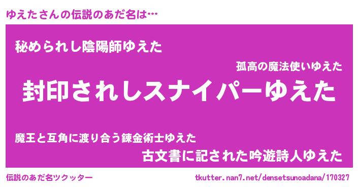 | 胡散臭い通販商品みたいなあだ名 | 『億万長者になれる霊験あらたかなお札…その名も「ゆえた」』 |