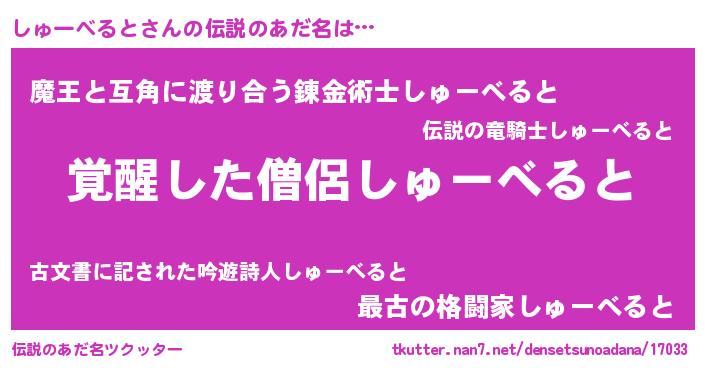 | 女子向けラノベタイトル風あだ名 | 『男装しゅーべるとの憂鬱な任務』 |