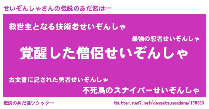 | ヒーロー風カッコイイあだ名 | 『天弓騎士セイ』『スーパーセイゾンシャ』 |