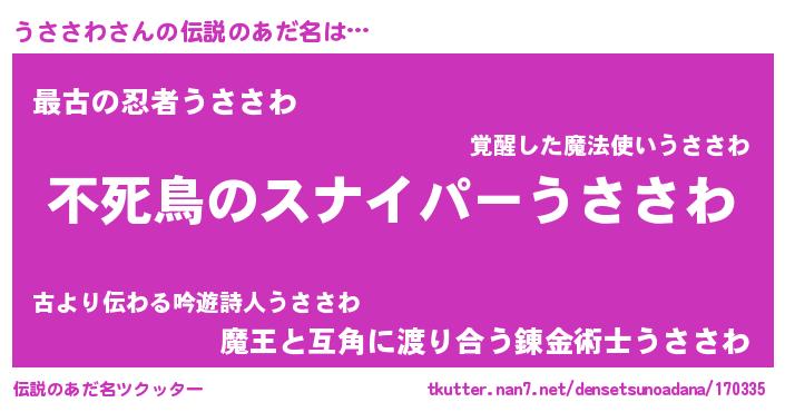 | ポケモン風あだ名 | 『ウサチュウ』『ウササダネ』 |